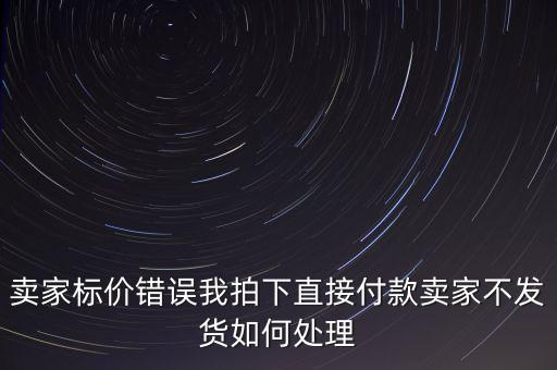 賣家標(biāo)價(jià)錯(cuò)誤我拍下直接付款賣家不發(fā)貨如何處理按照法律上來解釋,賣家給你退款結(jié)束交易了事.這個(gè)不會(huì)因?yàn)橘u家標(biāo)錯(cuò)了價(jià)格你拍下了...[詳細(xì)]